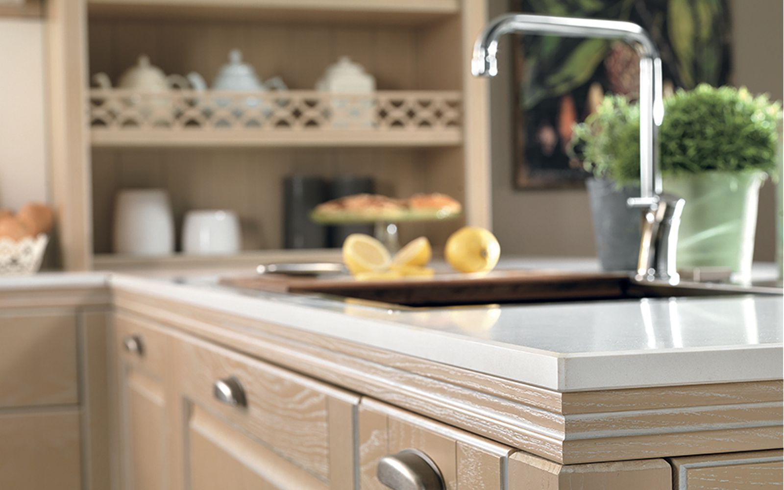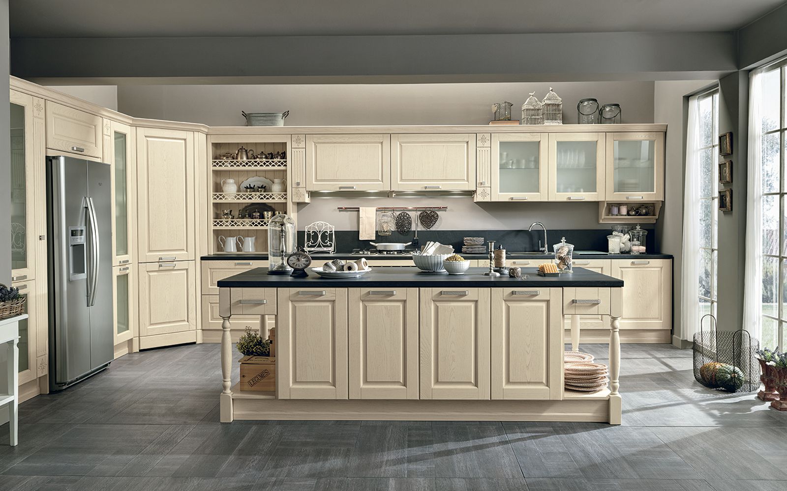 Una cucina che racconta una ricercata eleganza dove particolari esclusivi introducono accessori, lavorazioni e materiali di prestigio. Opera sa interpretare anche lo stile del classico provenzale, un’eleganza mediterranea raccontata attraverso gli elementi decorativi.