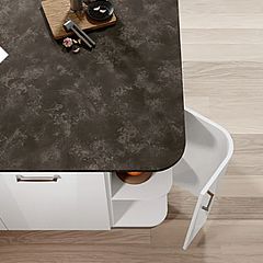 Il piano sagomato arreda e delinea un’area di lavoro comoda ed ergonomica.