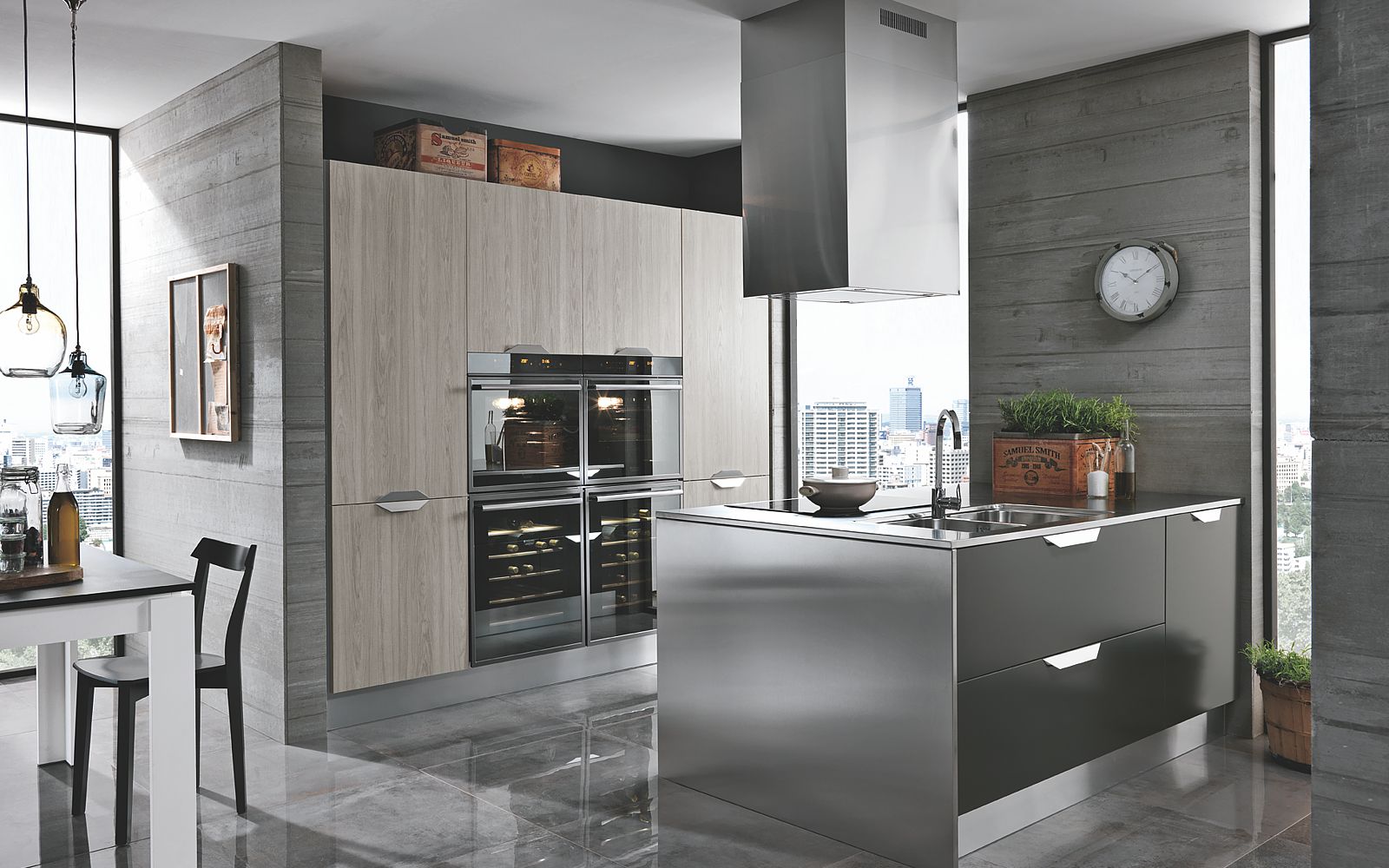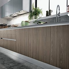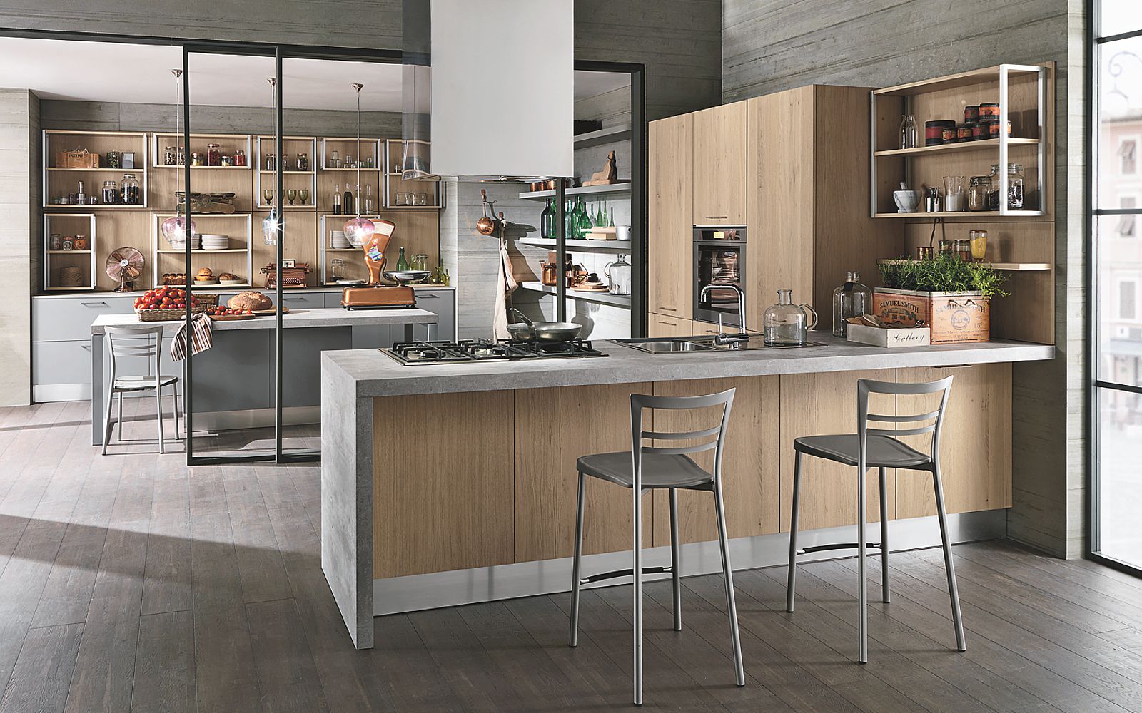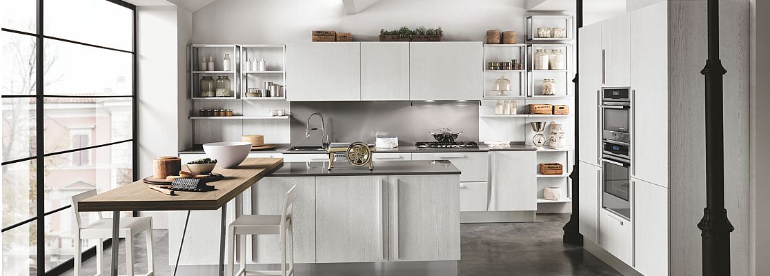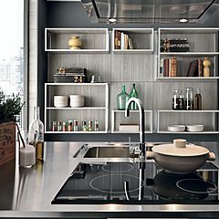 Gli elementi a giorno Groove si coordinano con le finiture della cucina e permettono di creare nuove soluzioni volumetriche.