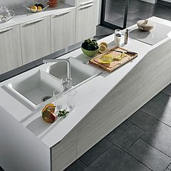 Elementi originali e realizzabili su misura, come il Top sagomato, permettono di sfruttare al massimo le superfici favorendo i volumi e gli spazi.