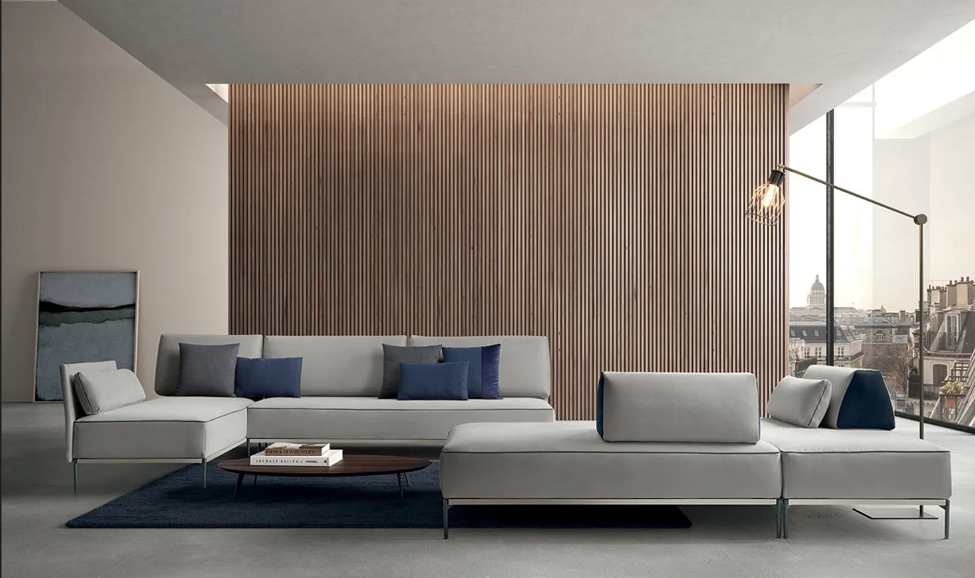 Un sistema componibile dedicato al comfort e allo stile che si adatta a tutti gli spazi. Le linee essenziali e accoglienti sono enfatizzate grazie all’adozione dei piedini che sollevano da terra la struttura donando slancio a tutte le possibili configurazioni realizzabili.