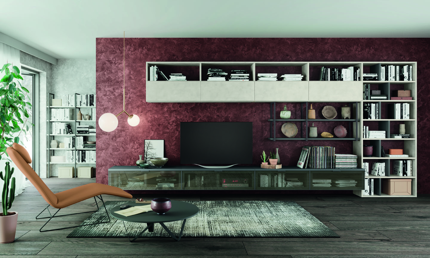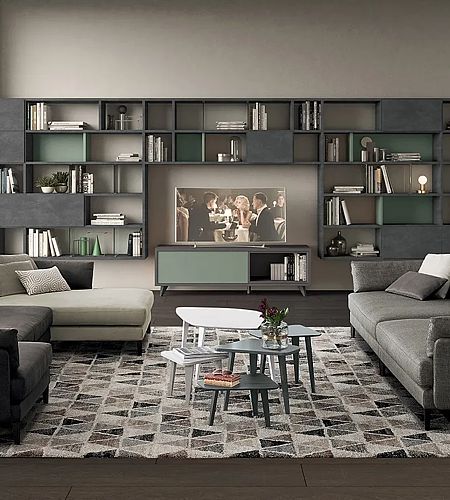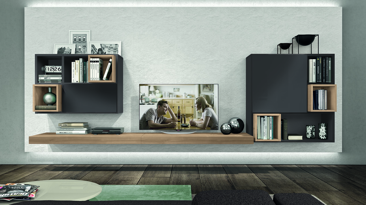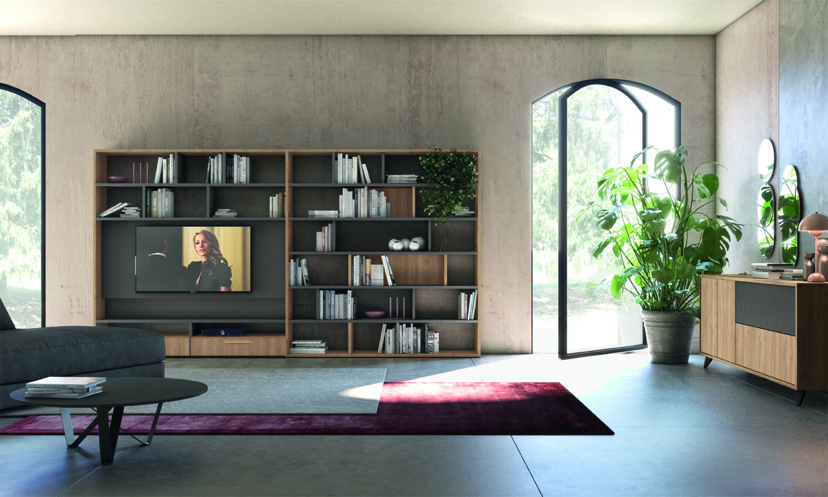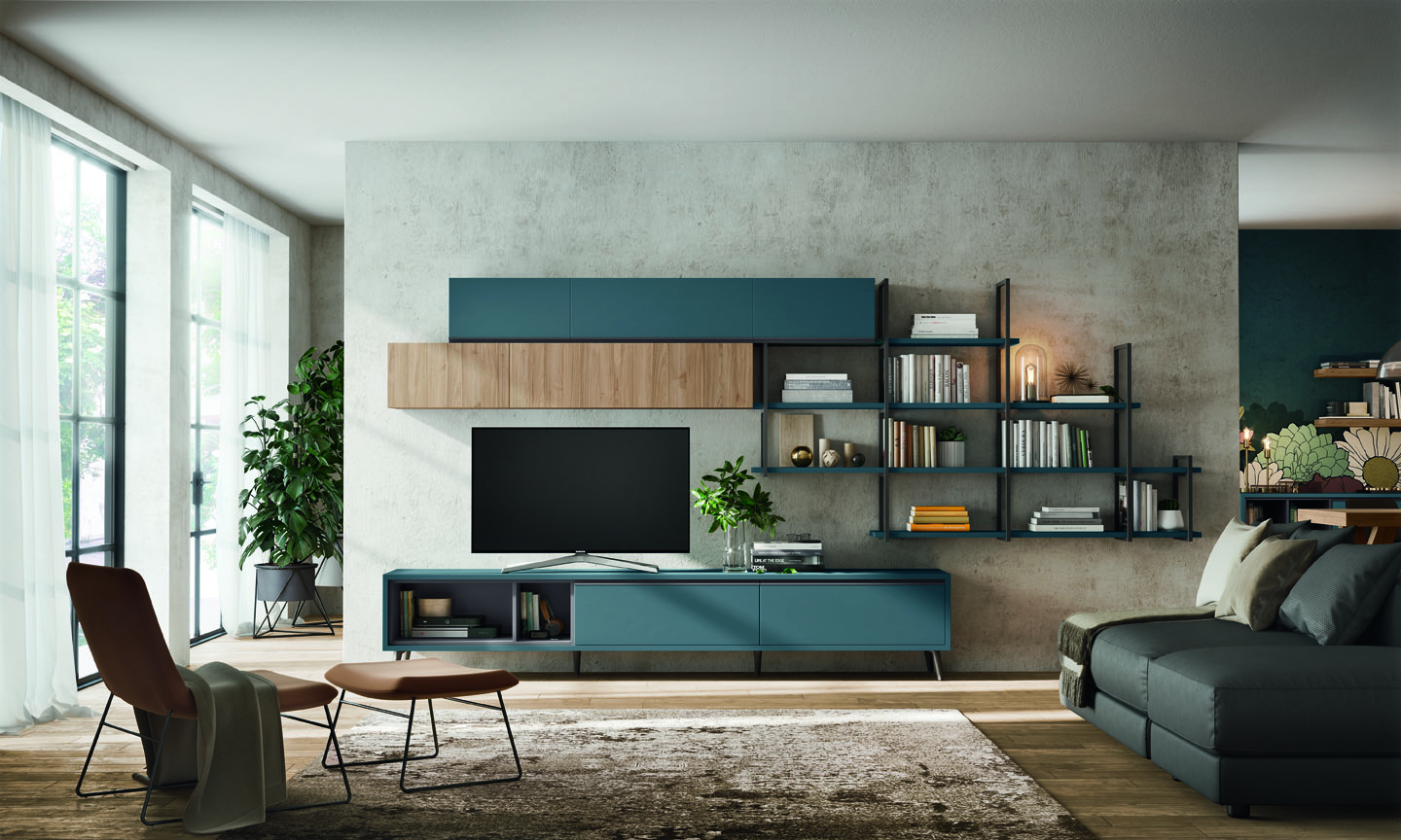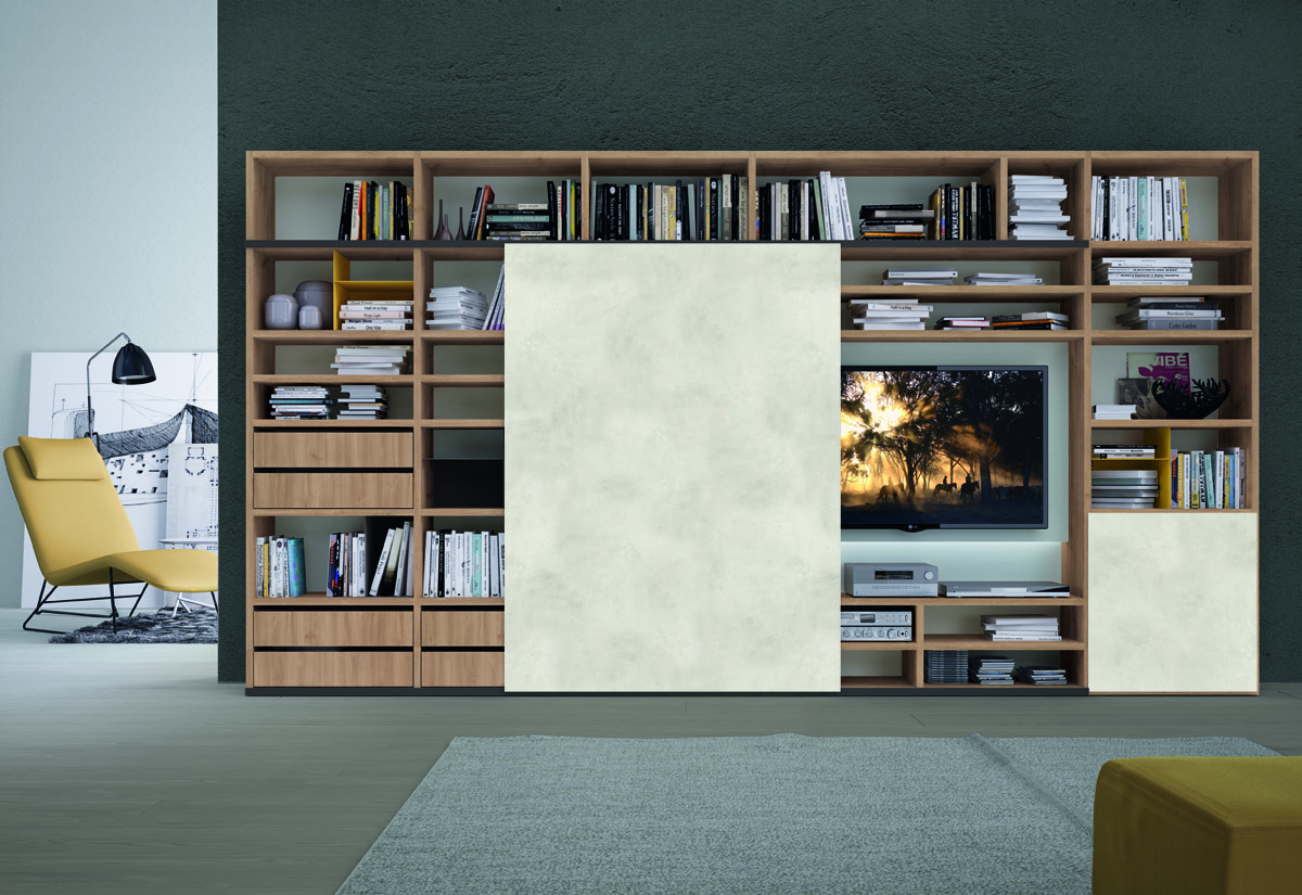 Tante soluzioni diverse per arredare la Zona Giorno e renderla unica, assecondando le esigenze e le peculiarità di ogni ambiente. Madie, basi, pensili e librerie a terra o sospese, diventano protagoniste del Living, donando carattere e stile ad ogni elemento presente.