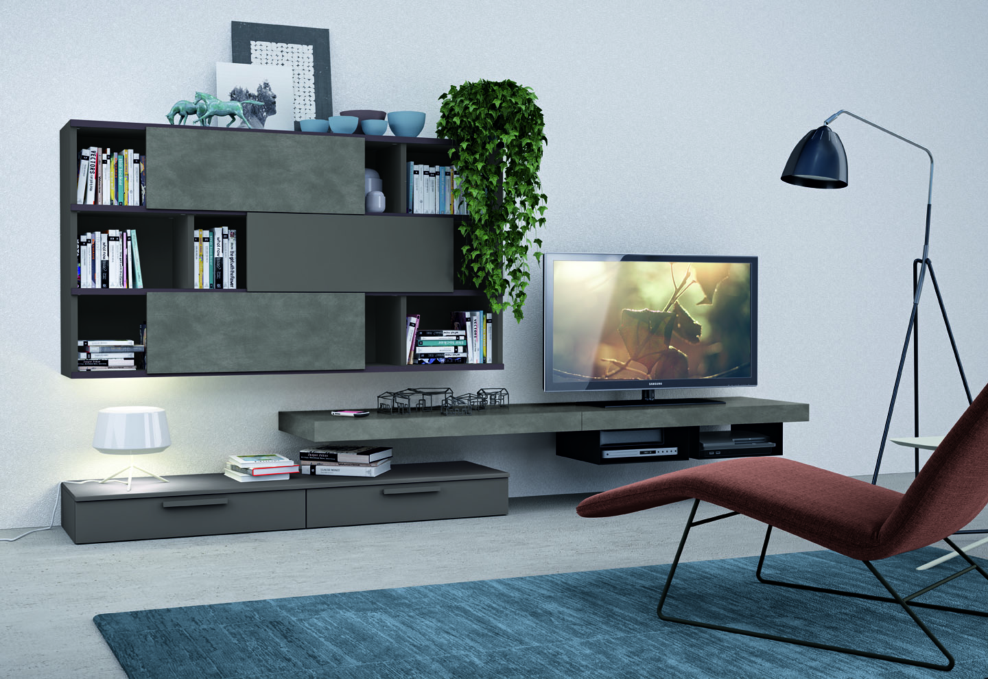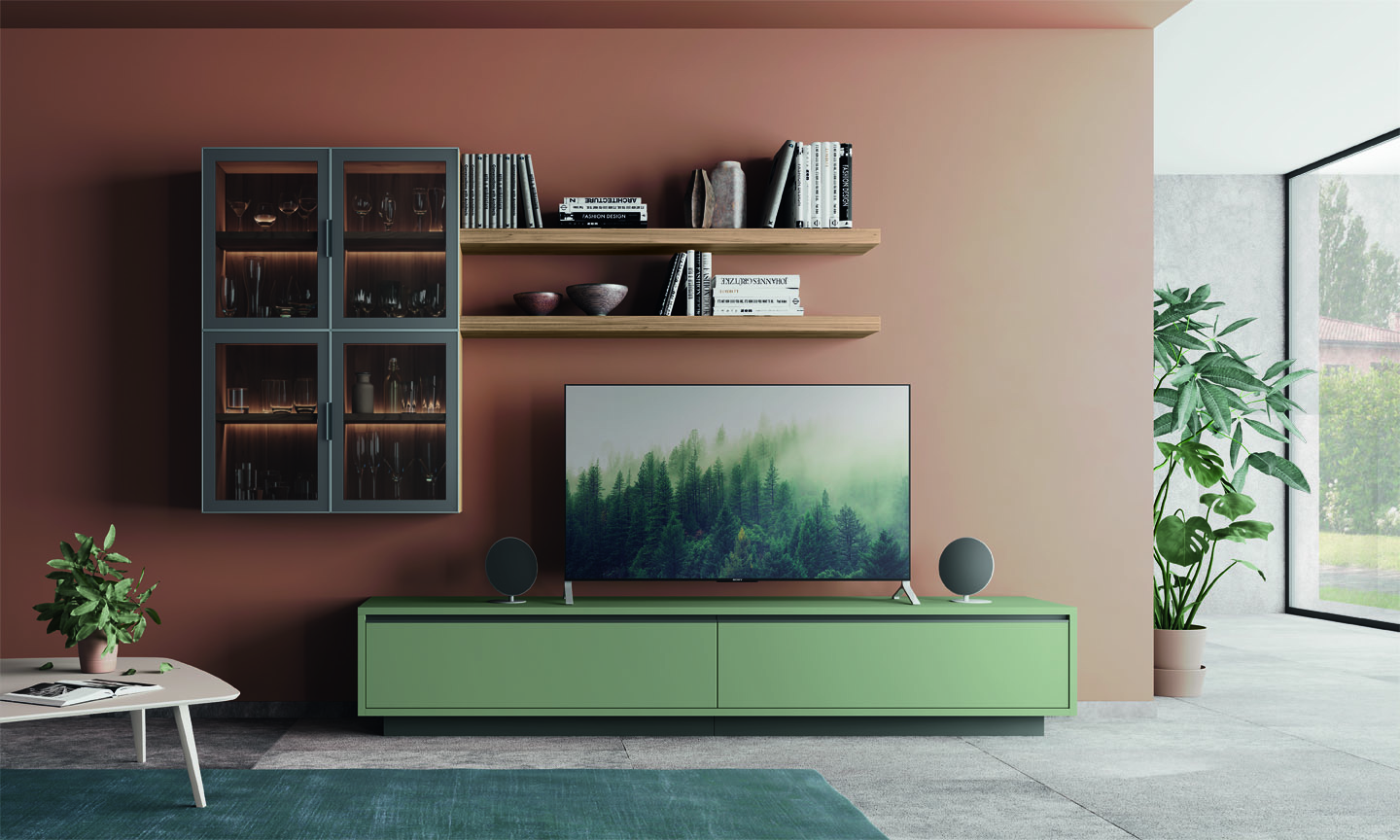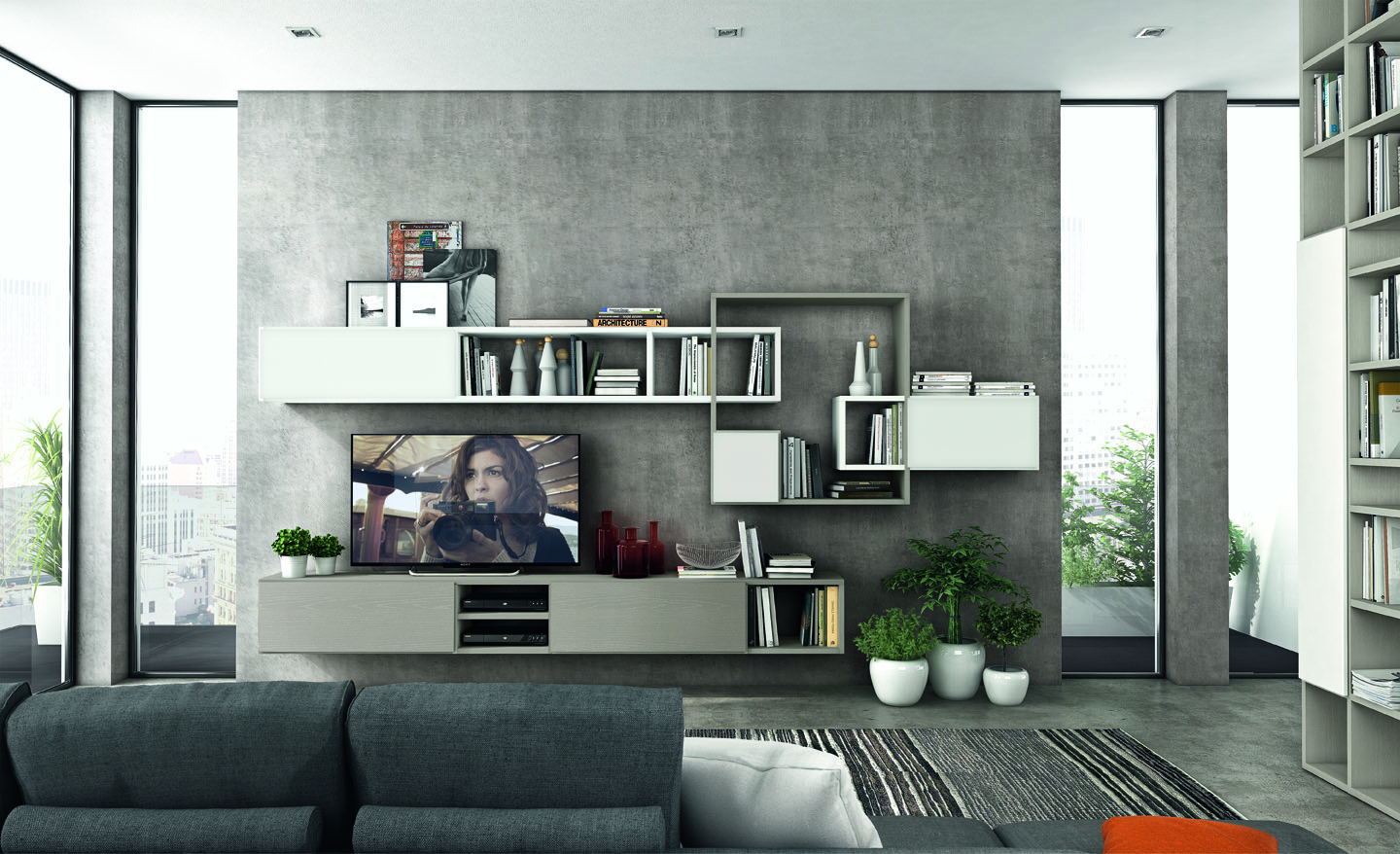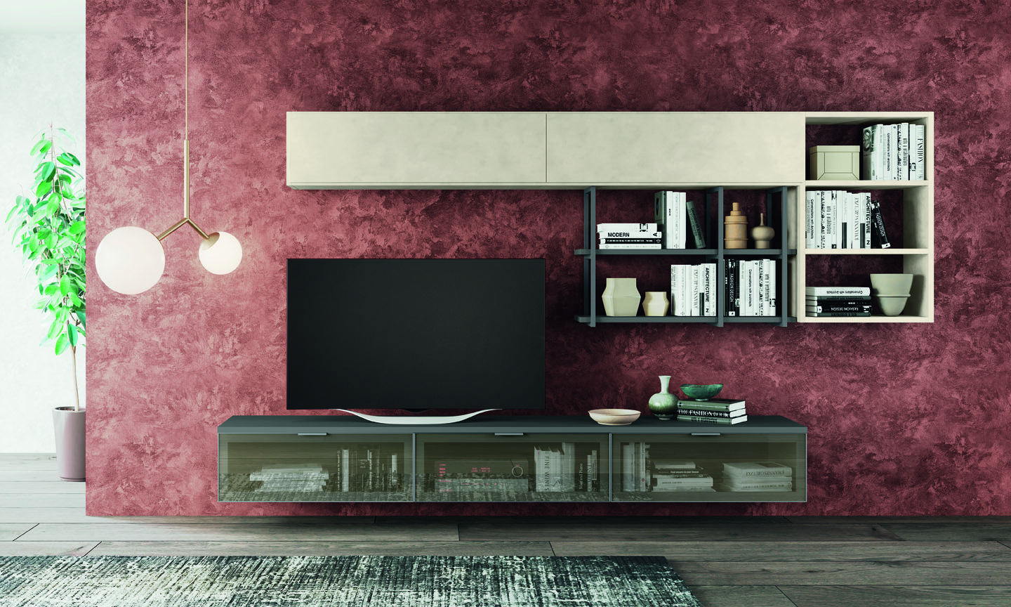 Tante soluzioni diverse per arredare la Zona Giorno e renderla unica, assecondando le esigenze e le peculiarità di ogni ambiente. Madie, basi, pensili e librerie a terra o sospese, diventano protagoniste del Living, donando carattere e stile ad ogni elemento presente.